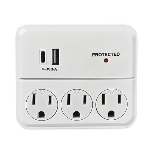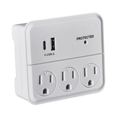 Charge and power all your devices with this wall tap that features three AC outlets, one USB-A, and one USB-C port. 3.4 total amps. Plugs into existing AC three-prong outlet. Fast, full-speed charging.