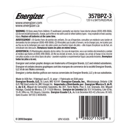 357/303 Silver Oxide Button Cell Battery, 1.5 V, 3/Pack