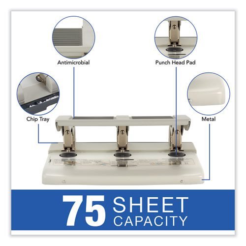 75-Sheet Heavy-Duty High-Capacity Three-Hole Adjustable Punch, 9/32″ Holes, Putty/Gray