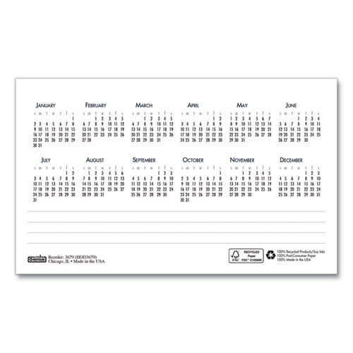 Full-year reference calendar on the back of each page.