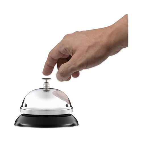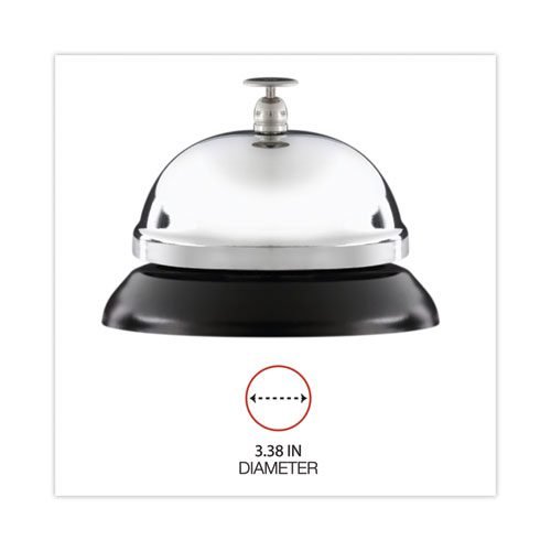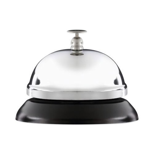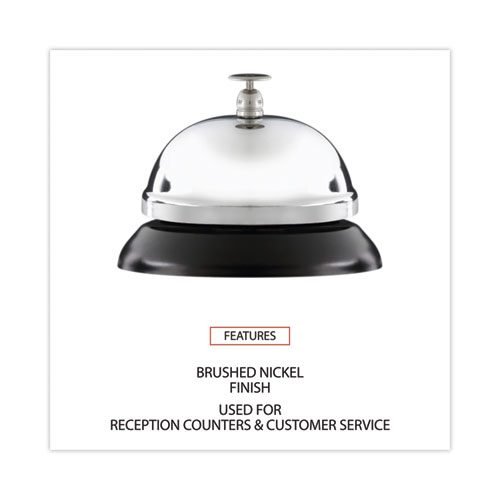 Attention grabbing bell to alert staff when customers or clients arrive at the counter and need assistance. Easy to push bell that emits a clean, clear, distinguishing tone when pushed. Sleek, modern style features a nickel-plated bell with black base. Great for reception counters and customer service areas where people need service and can alert staff with a simple ring.