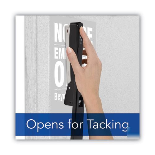 Opens for tacking to post papers to a bulletin board or other vertical surfaces.