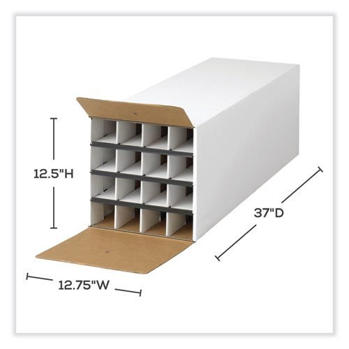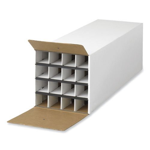 The Safco Compact KD Roll File is an engineering document storage that offers 16 file compartments for housing of large file organization. The Compact Roll File is a white corrugated fiberboard large file organizer.