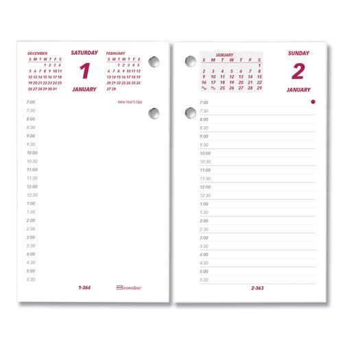 One day per two page spread with half-hour appointments times. Fits most calendar bases up to 6 x 3 1/2 page size, sold separately.