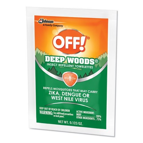 Each towelette features a formula containing 25% DEET. The unique towelette design makes carrying them a quick and simple process — simply place them in the car or supply kit. Effective formula repels mosquitoes that may carry West Nile virus and also provides protection against ticks, biting fleas, gnats and chiggers. Non-greasy formula lasts up to eight hours, will not dry out and resists perspiration.