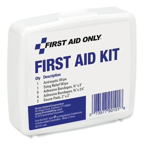 Compact mini first aid kit. Contains basic first aid items to treat the most common incidents and accidents. Perfect for travel. Fits in purse, gym bag, glove compartment, golf bag or desk drawer.