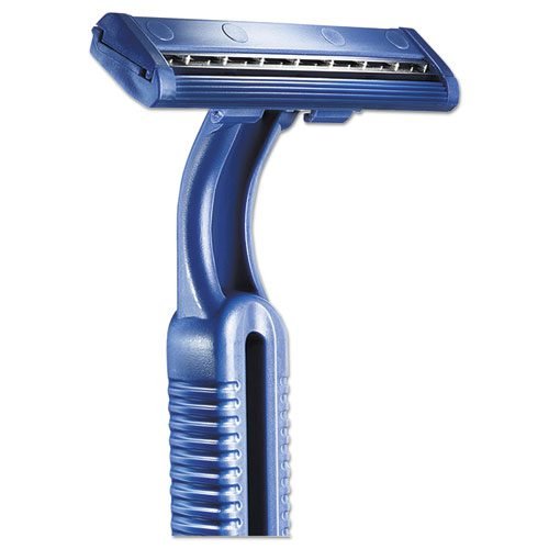 Razor with dual thin blades provides a comfortable shave for anyone. Convenient easy-grip handle provides better control while shaving. Fixed, non-pivoting head.