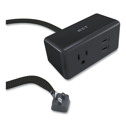 Charge USB-enabled devices and power up equipment all at the same time with this extension cord. The braided cord and plastic exterior offer durability and protection against everyday wear and tear, while the space-saving right-angled plug fits hard-to-reach power sources. It has a sleek, compact design that blends with most office environments.