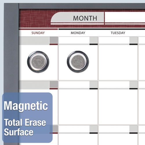 Effortlessly design custom-printed dry-erase boards using the Quartet® template tool. Choose from a variety of Planning or Tracking Systems, Calendars, Workflow Charts, Personnel Boards or create your own system using a variety of on-line tools. Alter text, add logos and even upload photos! Save, email and print your customized artwork at your local office supply or quick print shop. Delivers quality performance when communication, organization and collaboration is needed in frequent-use office environments or personal workspaces. Hinged steel frame secures custom printed artwork. Clear, flexible, patented lens provides a Total Erase® writing surface that resists staining and ghosting. Easy-to-clean, requires occasional use of Quartet® cleaning solutions. Durable dry-erase surface doubles as a magnetic bulletin board. Slim profile, contemporary, graphite frame modernizes any office. Includes mounting system, built-in marker tray and one dry-erase marker.