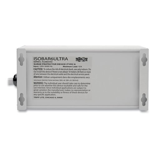Isobar Surge Protector, 6 AC Outlets, 6 ft Cord, 3,330 J, Light Gray