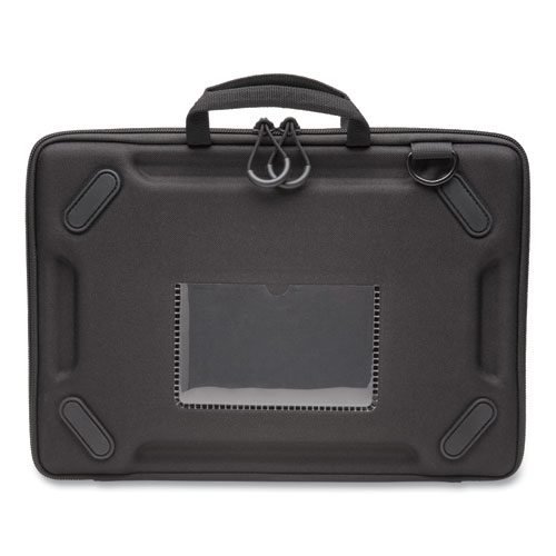 Tough, water-resistant shell resists spills and tears. EVA foam bumpers hold the Chromebook tight, provide shock-absorption, and protect from drops, bumps, bangs, impacts, scratches, and more. Clamshell stay-on design opens 180-degrees, so students can leave the case on while they work. Non-slip rubber feet keep the case from sliding or shifting while working. Ventilation channels ensure proper air flow and prevent overheating. Hand strap and detachable shoulder strap provide easy and secure carrying options. Paracord zip pulls are durable and easy for smaller hands to grasp. Transparent ID holder makes identification easy. Slim and compact design easily fits into a backpack or Kensington Charging Case.