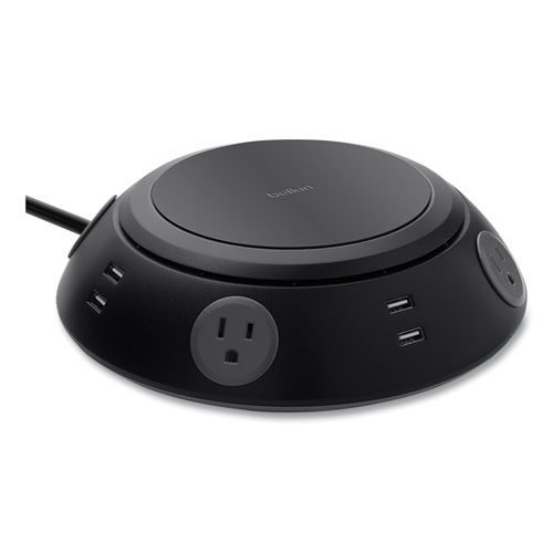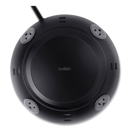 Meeting Room Power Center, 4 AC Outlets/8 USB Ports, 6 ft Cord, 1,080 J, Black