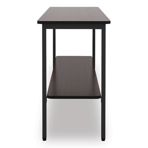 OfficeWorks One-Shelf Utility Table, Rectangular, 47.25″ x 17.7″ x 29.5″, Walnut Top, Black Base/Legs