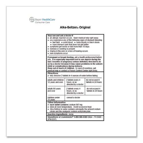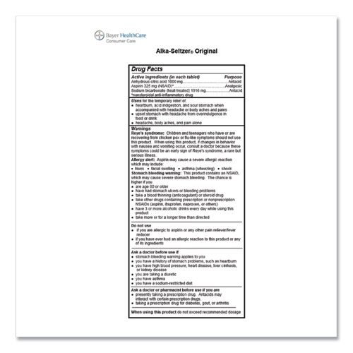Suffer no more—get fast relief of heartburn, upset stomach, acid indigestion with headache and body aches from this antacid and pain reliever. Effervescent antacid and pain is an easy-to-use solution for everyday digestive issues. Unlike other antacids, Alka-Seltzer® Original contains an analgesic for pain accompanied by heartburn and acid indigestion. Single dose packs in a convenient dispenser box are an ideal choice for the office; place them in a kitchen or common area, so everyone has access.