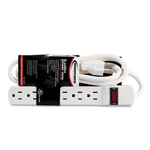 This six-outlet power strip extends the functionality of electrical outlets, and gives extra reach to electrical cords. Features three-prong outlets to handle AV or printer equipment, and a circuit-breaker switch for maximum energy conservation when accessories are not in use. Features three-prong plug. Maximum load on all six outlets not to exceed 15 amps