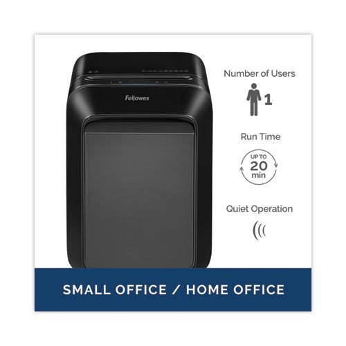 The Fellowes LX180 cross-cut shredder is thoughtfully designed and includes the groundbreaking new IntelliBar feature with patented responsive technology that is 100% Jam Proof, allowing you to shred safely and quietly with maximum protection, productivity and convenience. Effortlessly power through paper jams with 100% Jam Proof technology. Monitor real time performance with bin full and runtime indicators. Optimize how many sheets to feed at one time with the efficiency meter. The integrated patented SafeSense technology keeps shredding safe and accident free, especially around children and pets and leverages an elevated design that brings distinction to any work environment. The LX180 shreds 16 sheets of paper per pass into small cross-cut particles for enhanced security (Security Level P-4). In addition to paper, it also destroys staples, paper clips and plastic credit cards. The LX180 shreds continuously for up to 20 minutes allowing you to complete your shredding job in one sitting. Includes spacious 6 gallon pull-out bin that holds over 400 shredded sheets.