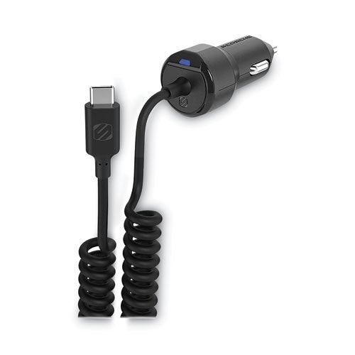 Charge devices on the go with this car charger. The Power Delivery 3.0 and 18 W output deliver fast charge, while built-in circuitry ensures overcharge prevention. An LED power indicator shows when the charger is receiving power. This scosche PowerVolt car charger has an attached coiled cable for convenience while charging.