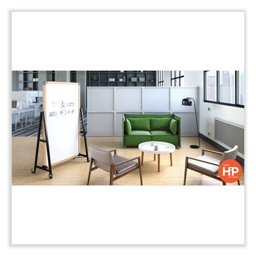 We’ve elevated the mobile whiteboard from purely functional to a beautiful piece of furniture. The prominent wood frame and matte black steel construction create an eye-catching combination that will contribute to the aesthetic of a space.