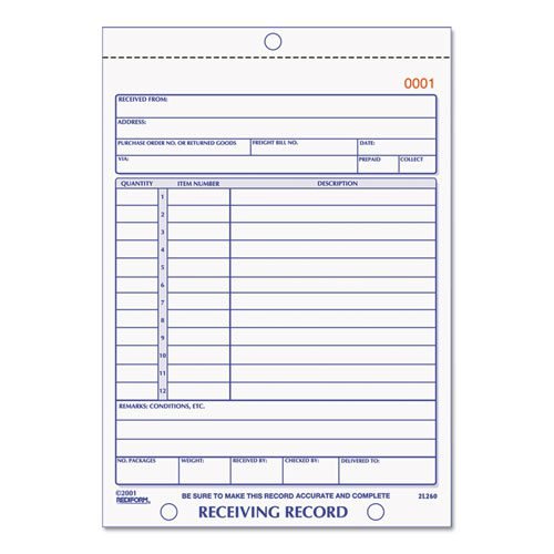 Receiving Record Book, Three-Part Carbonless, 5.56 x 7.94, 50 Forms Total