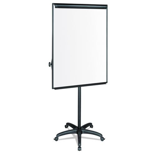 This basic mobile easel allows you the versatility of mobility at a genuine value. The lacquered magnetic steel surface is ideal for frequent use. The board tilts for comfort, and the no-pinch patented pad retainer is fully adjustable and will hold any size or brand pad. This is constructed with an aluminum frame.