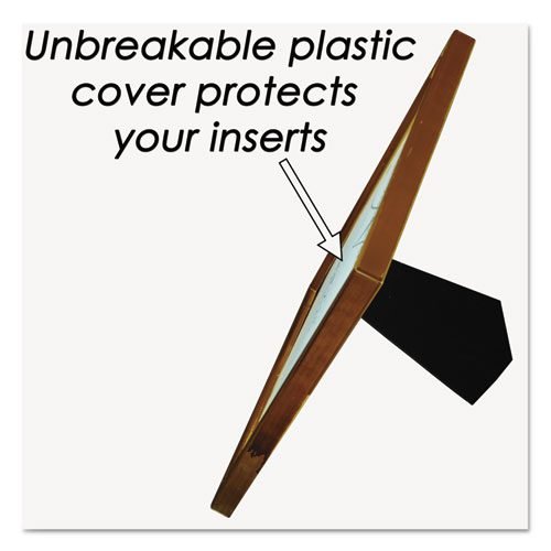 Brings the warmth of nature to your workspace, office, lobby or home. This sturdy multipurpose solid hardwood frame is suitable for awards, certificates, documents and photos. Display your achievements with pride in this room brightening natural wood color frame that accents the contents protected behind a clear unbreakable plastic cover. Designed for use on the wall or desk this beautiful frame can be displayed in landscape or portrait orientation. Built-in photo frame type easel support makes desk, counter or bookshelf displays with ease.