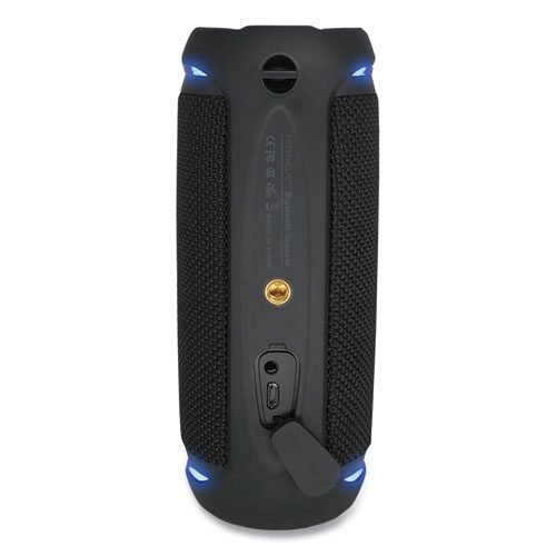 This wireless speaker’s innovative design utilizes two active speakers and two passive radiators, providing deep rich bass for hours of listening enjoyment. True wireless stereo allows you to pair two Sound Ring speakers to the same source to form a true wireless stereo system. Spread your Sound Ring speakers 20 ft apart to fill your space with 360° sound. Built-in microphone allows you to answer calls with the touch of a single button. IPX6 Waterproof tested to protect your device from high-speed water jets, so if you were to get caught in a powerful rain storm or heavily splashed when poolside, your speaker is protected. Stylish dual LED indicators notify you with visual alerts when charging, charge complete, and pairing the speaker to your phone, tablet, computer or TV.
