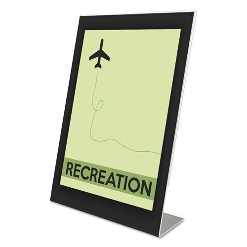 This sleek, slanted sign holder with permanent black border frames your message giving it a classy look, and keeps it at the perfect angle for viewing. The holder’s clear, durable plastic panels provide protection for your sign, from tears, spills and other damage. Signs can easily be inserted into the holder from the side, making insert changes quick and effortless. For use on flat surfaces such as desks and countertops.