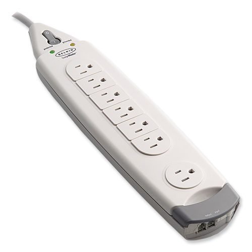 Offers protection for your entry-level computers, peripherals, phone/fax/modems and more. Seven surge-protected outlets supply complete, three-line AC protection. The 14-gauge extended heavy-duty cord delivers optimal, safe AC power.